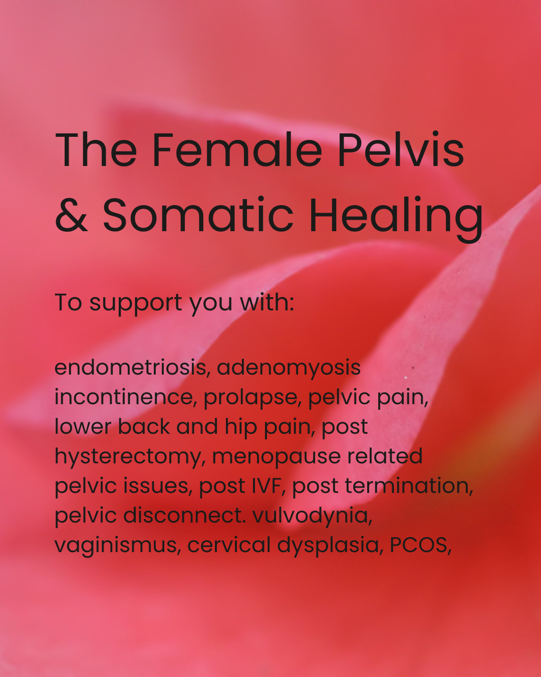 The female body suffers through existing in a linear, capitalist, sexist and misogynistic world. This is not just pelvic work but also a paradigm shift. Your pelvis is your root and your source to power and creativity. Reclaim your pelvis and reclaim your life.